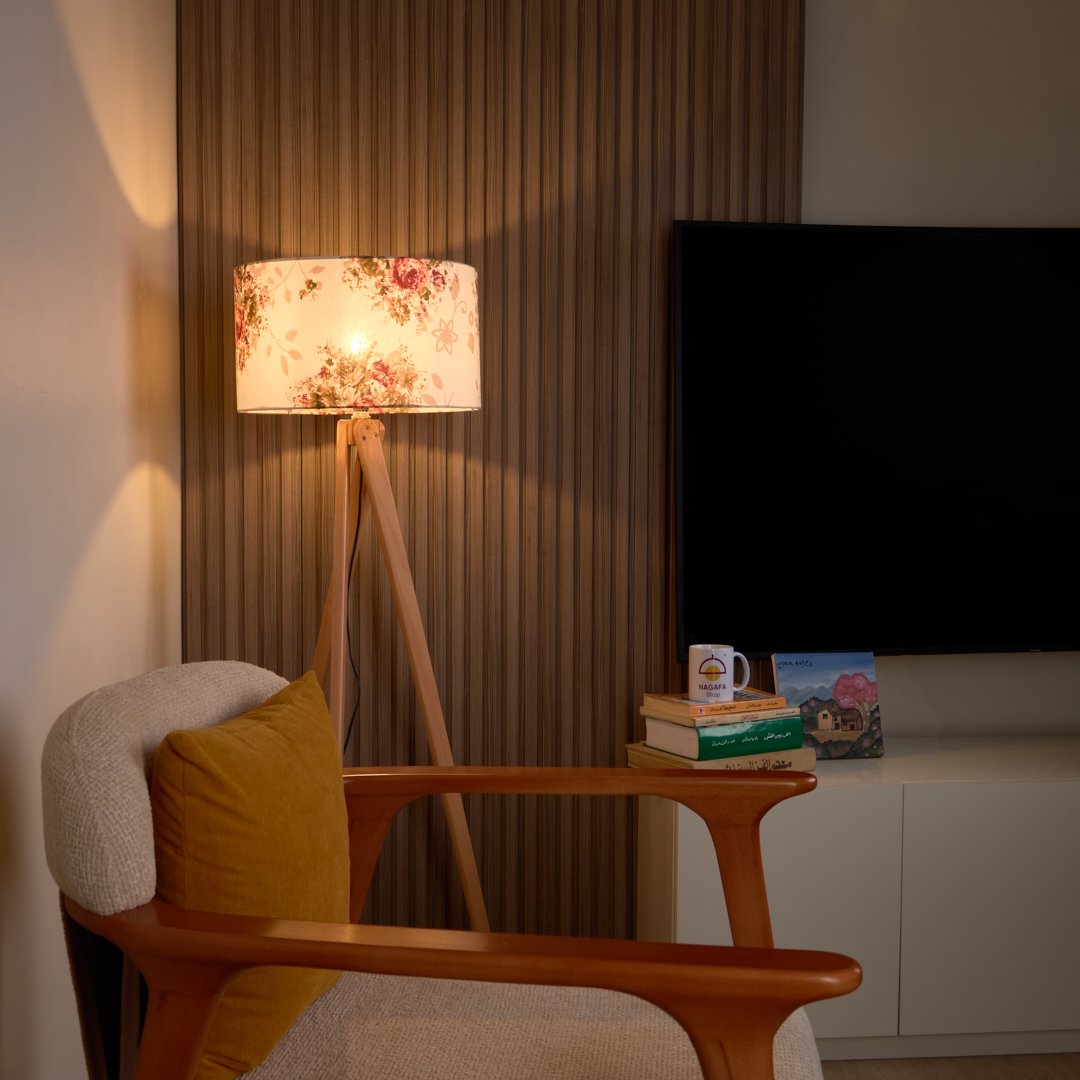 استمتعي بإضاءة دافئة وأناقة طبيعية مع الأباجورة الأرضية من نجفة شوب.
