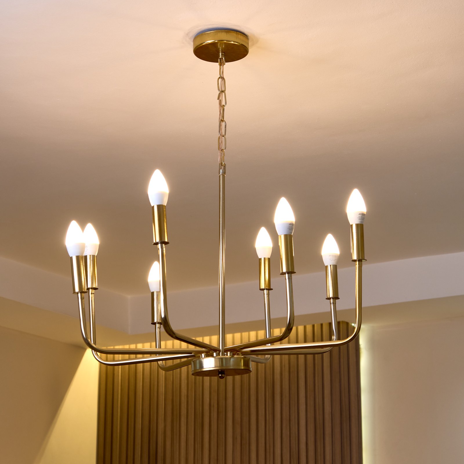اختاري الإضاءة المثالية لمنزلك مع النجفة المودرن الذهبية ذات 8 ذراع المصنوعة من معدن متين غير قابل للصدأ، والتي تجمع بين الشكل الأنيق والتصميم العملي.